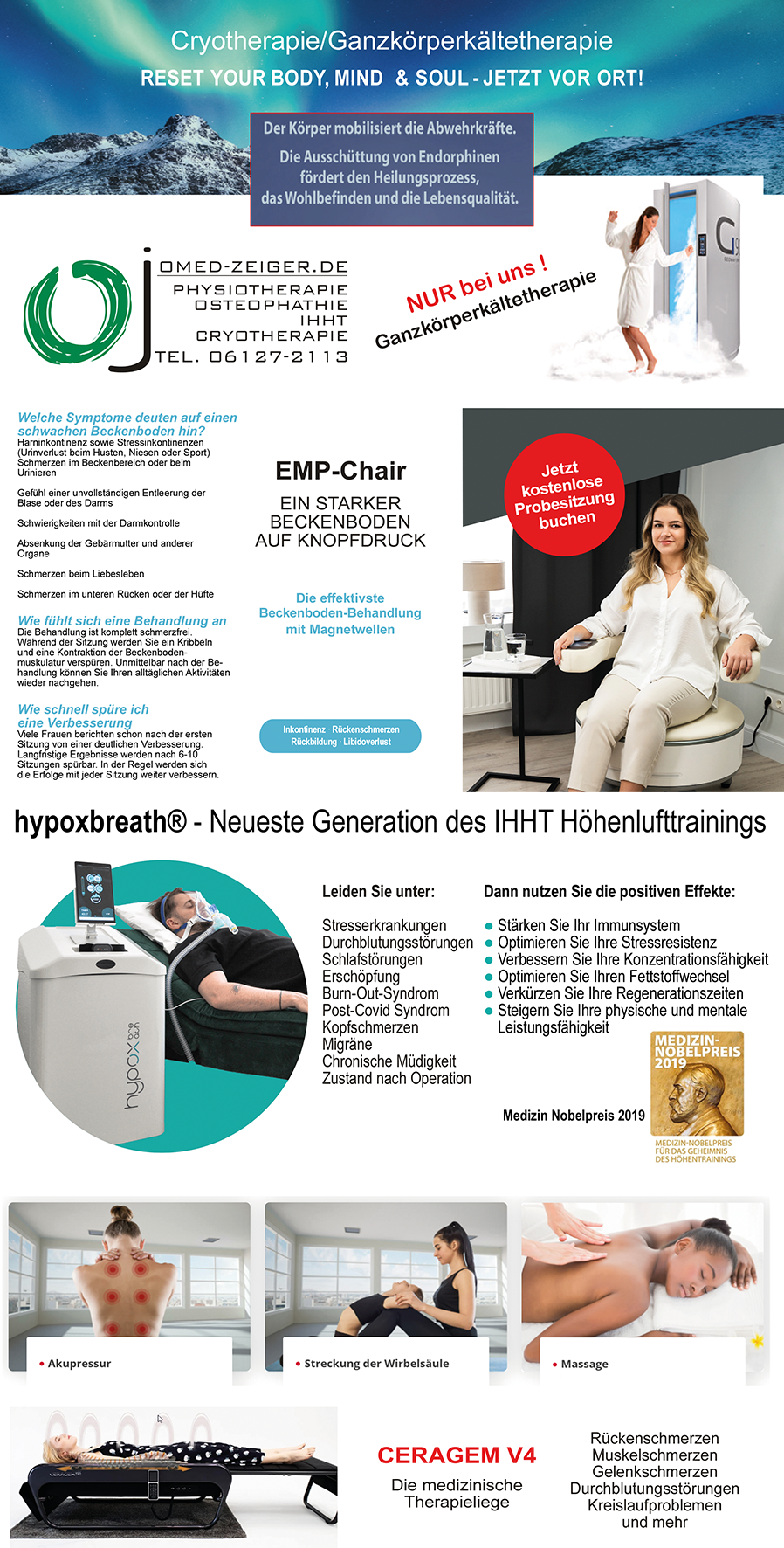 Ceragem V4, EMS Training, Beckenboden Training, Zelltraining IHHT,